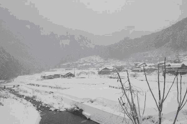 ここ中津川集落と他の集落を結ぶ道は、今でこそ川沿いやトンネルを使った新しい道路ですがその昔は川沿いではなく「尾根伝いの道」だったのです。急峻な谷沿いの道よりも安定した尾根筋での道路作りの方が当時としてはより懸命な選択だったのかもしれません。で、この尾根伝いの道は「矢立街道」と称して今でも立派に残っています。この矢立街道から中津川集落に入るには、必ずこの沈下橋「サワタリ橋」を通ることになるのです。橋のたもとには「お茶堂」が今でも残っており、当時の人々の行き来や生活をしのぶ事が出来ます。是非一度はこの沈下橋「サワタリ橋」を訪れてみてはいかがでしょうか。上の写真は平成17年12月の雪景色の中のサワタリ橋です。夏の季節の沈下橋と比べてみてください。冬の中津川集落も良いものです。