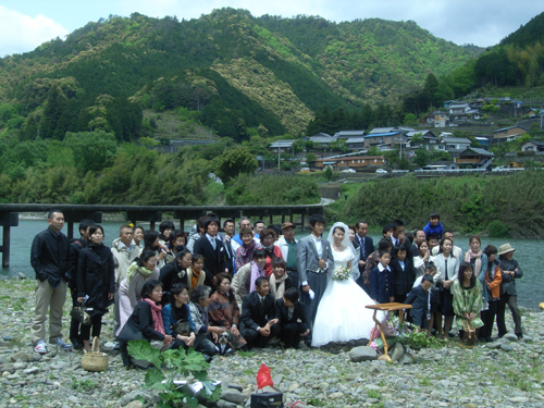 川に生まれ川に育った宮崎君は結婚式も「川」で行ないます。